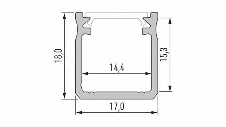 Dzięki podwyższeniu wymiaru bocznych ścianek profilu uzyskujemy jednolite, bardziej ukierunkowane światło bez widocznych diod LED (przy zastosowaniu mlecznego klosza BASIC). Profil zachowuje wrażenie dyskretnej oprawy do taśm LED oraz doskonale nadaje się do podświetleń dekoracyjnych w meblarstwie i przy wykończeniach wnętrz. Szerokość zewnetrzna 17mm, wysokość zewnętrzna 18mm.